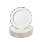 Platos Desechables Party World White & Gold Beaded Plate (10 In, 6 Piezas)