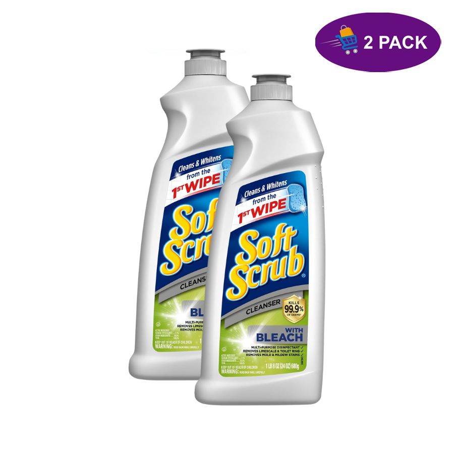 Soft Scrub® con limpiador de lejía limpia y desinfecta en un solo paso, matando el 99,9 % de los gérmenes domésticos. Esta fórmula de potencia de lejía es resistente a las manchas y suave a las superficies, por lo que es fácil lograr un brillo brillante y sin arañazos en la mayoría de las superficies. Tamaños disponibles: 24 oz y 36 oz
