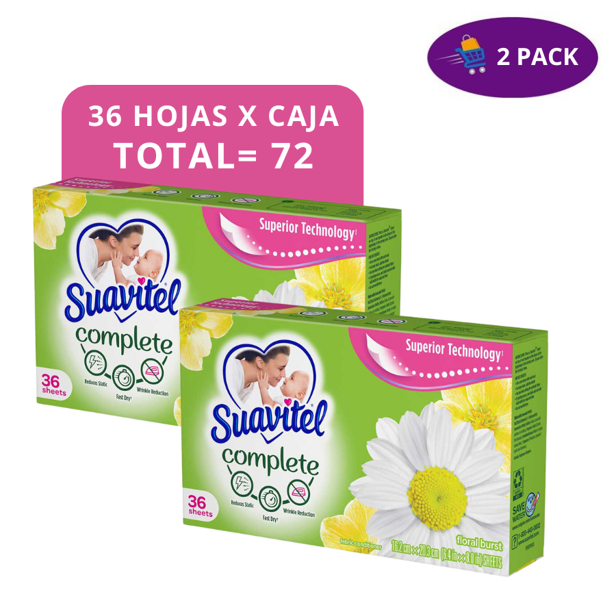 Suavitel Complete Floral Burst Hojas Para Secadora 2 cajas de 36 hojas = 72 hojas, 2x $5.50